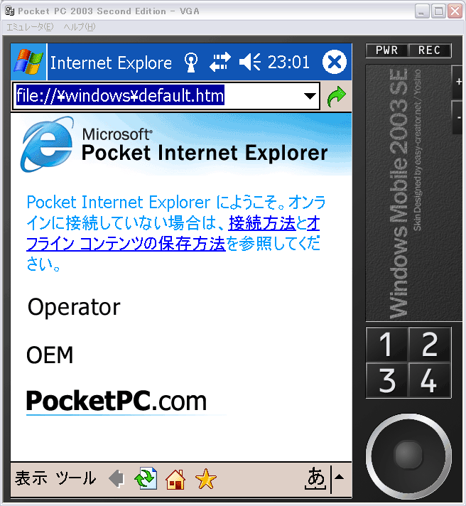 開発環境のWindowsMobile2003エミュレータですが。