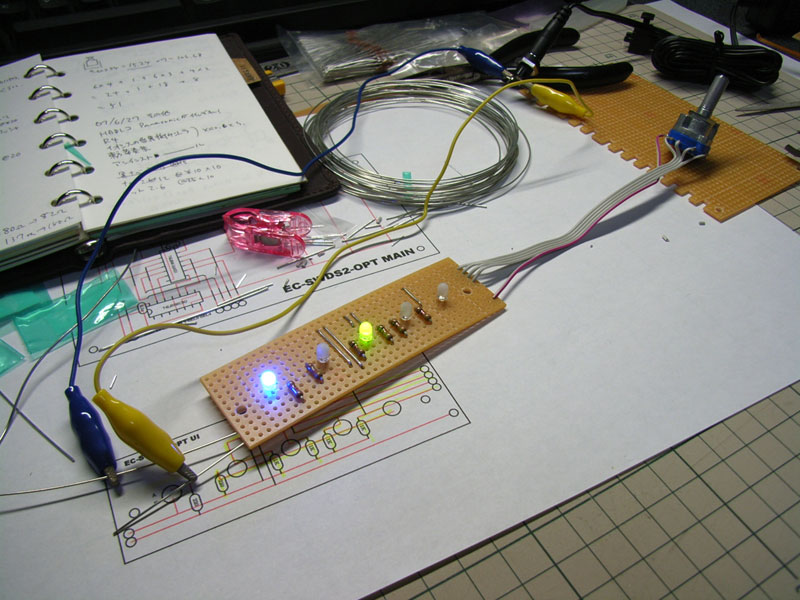 とりあえずサブ基板だけ部品取り付けてロータリースイッチとつないでみました。