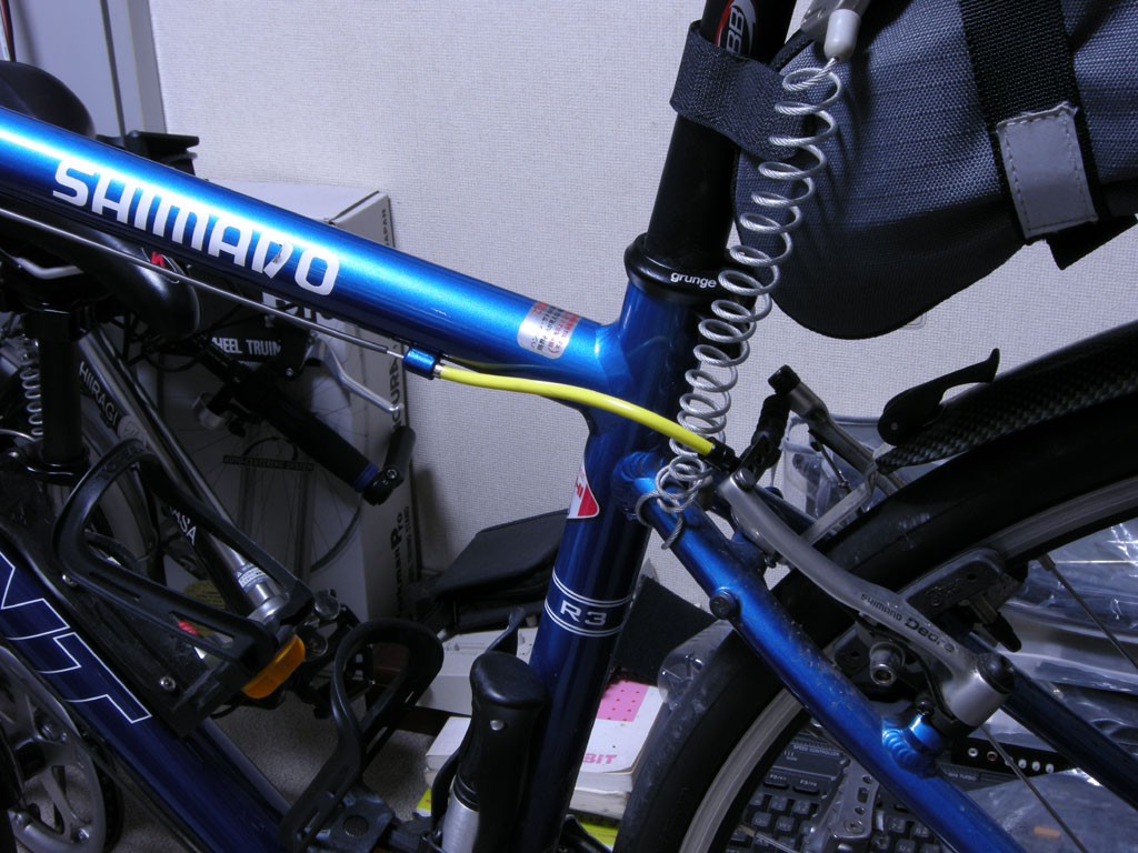 ブレーキのアウターはちょっとしたアクセントになるかもって事で黄色にしてみたんだぜ?(ぉ