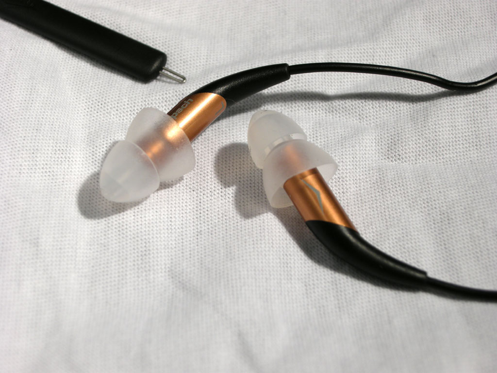 今まではSHURE E4 + トリプルフランジイヤパッドだったんですが、このイヤパッドは遮音性能がいい代わりに装着は結構手間で、左手を頭の後ろに回して右耳の耳たぶを引っ張って耳穴全開にして右手でグリグリ突っ込むという感じでした。