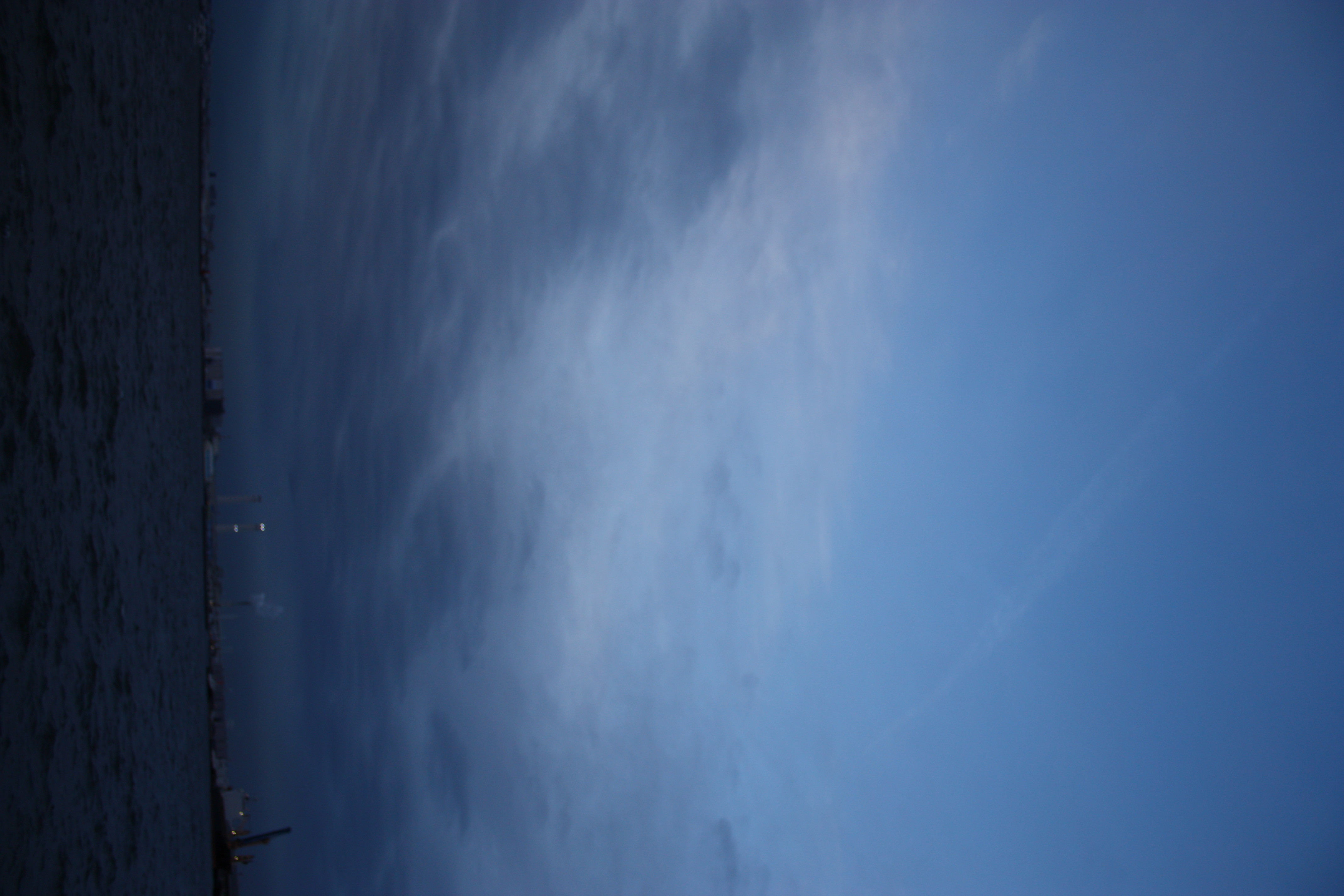 遠くは雨雲、頭の上は暗い青空という変なパターンだったので。
