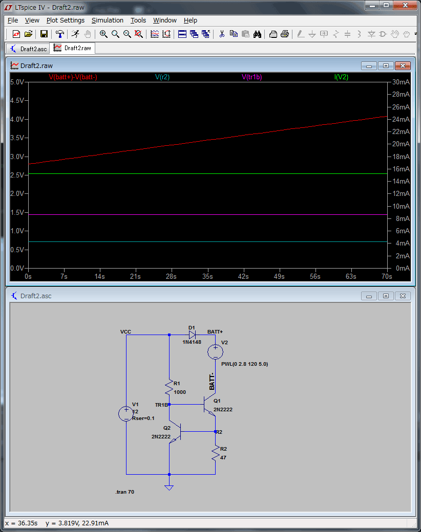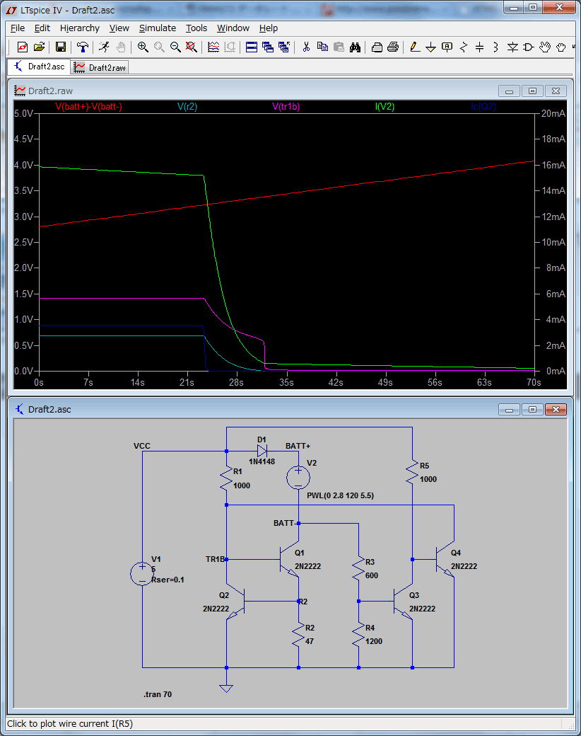 LM317Tの定電流回路(20mA)と定電圧回路(4.1V)を組んで、電圧とか電流測りながらつなぎ替えて充電。