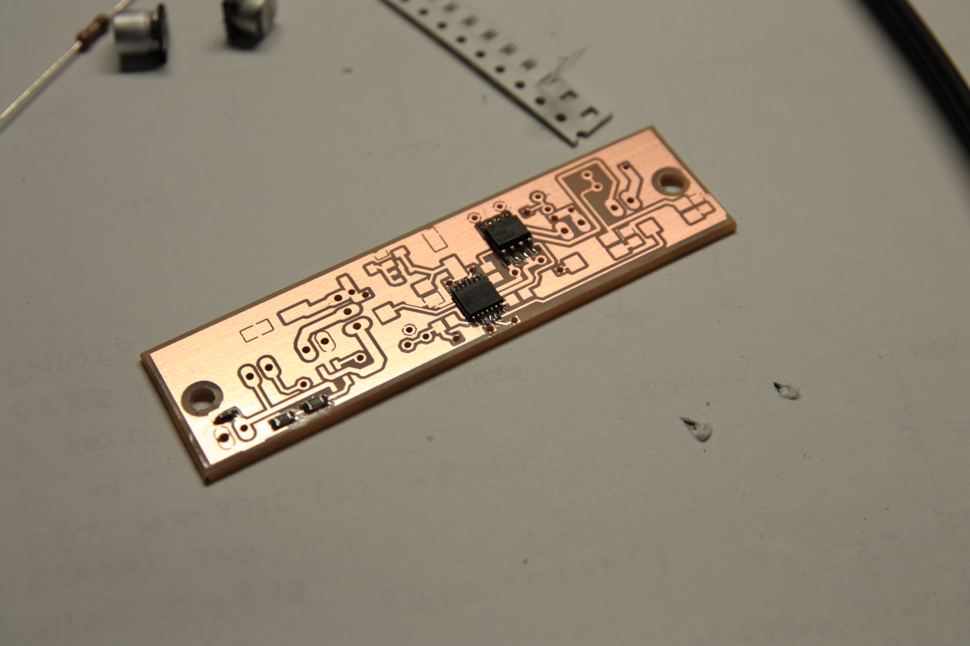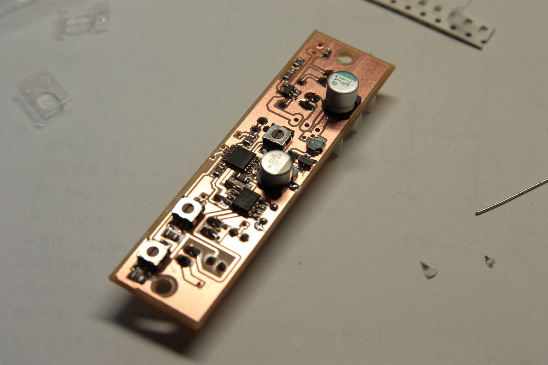 他は可能な限り表面実装部品を使うようにしました。電解コンデンサと半固定抵抗は初めて使ってみた。