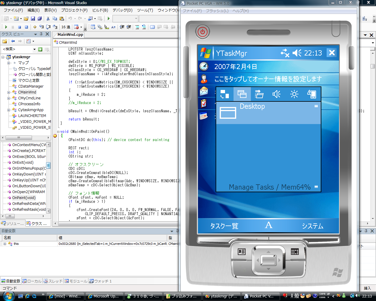 VisualStudio2005も動いてZERO3の実機でのデバッグも動いてるっぽいです。(スクショはエミュレータですが)