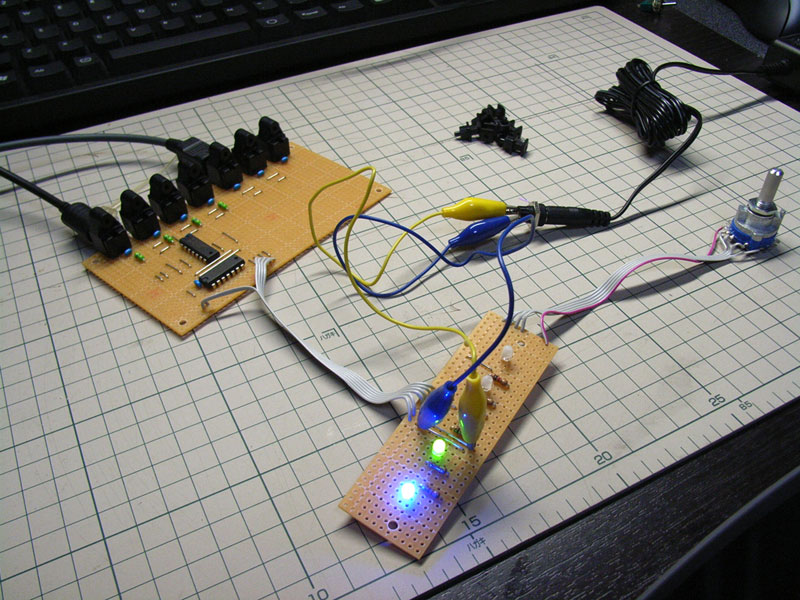 あとはサブ基板+ロータリースイッチとフラットケーブルでつないで5Vをぶちこめば動きますので。テストテスト。