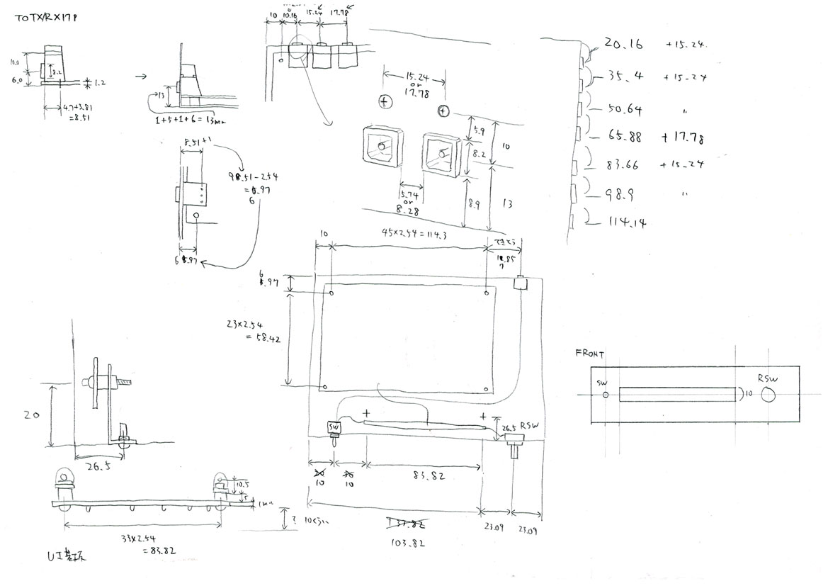 で、フロント基板を取り付けてみたらロータリースイッチと干渉しそう…というか干渉しています(死)