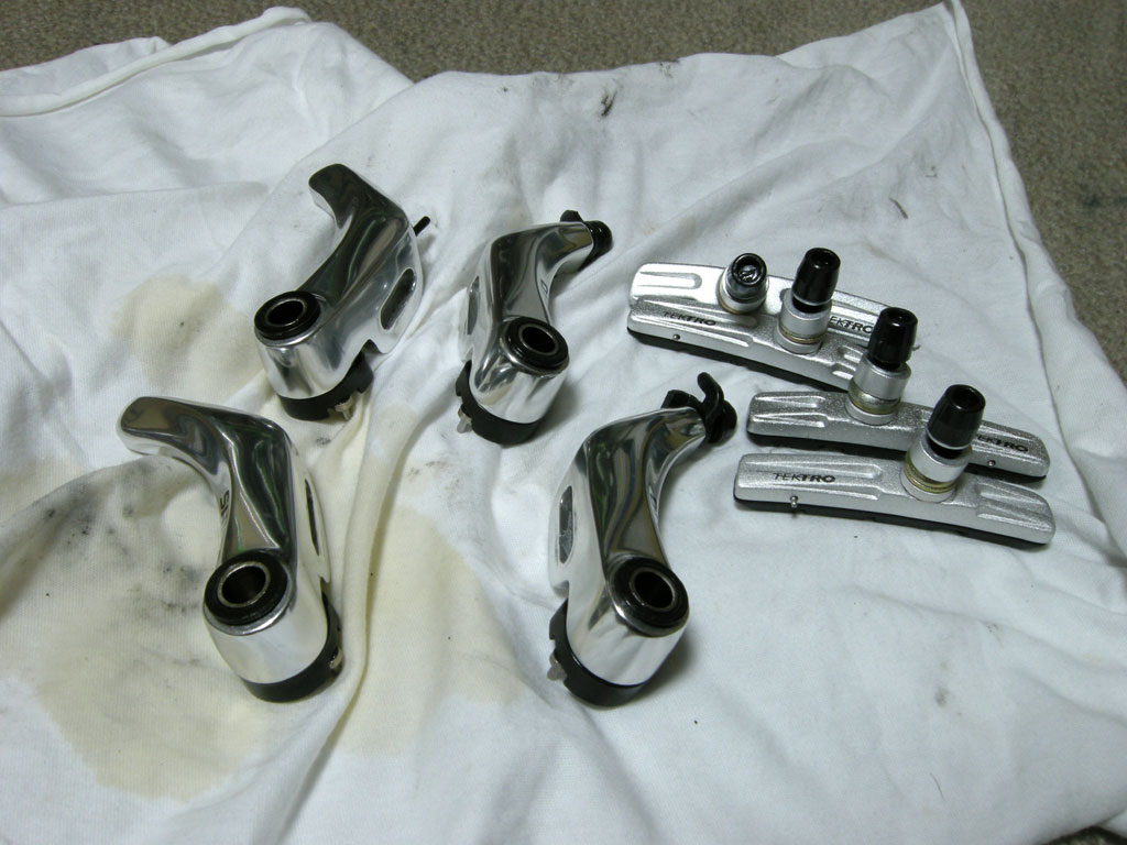 外したカンチブレーキは洗っておきました。改めて見ると高級感あるなあ。