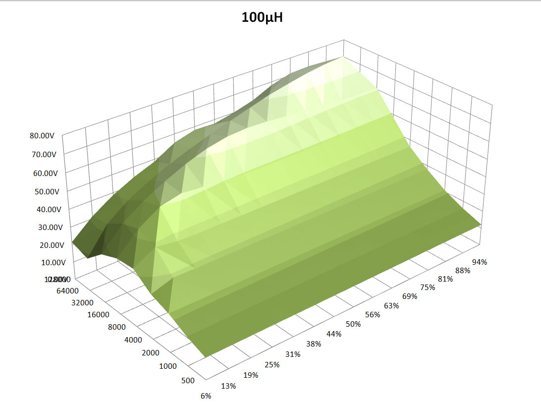 どんなデューティ比で、どんな周波数でコイルに電流を流したらどれくらいの電圧が出るのか?