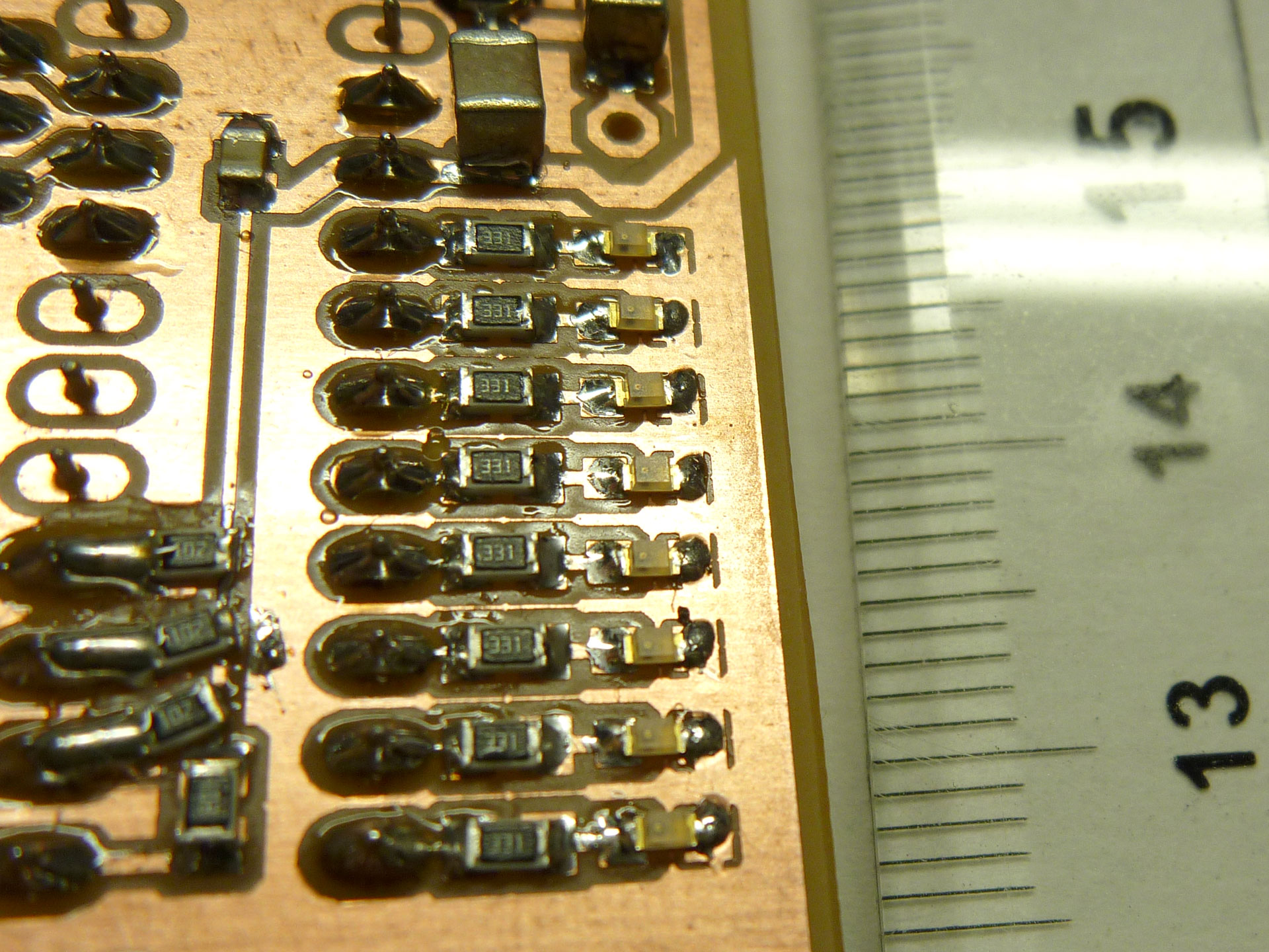 チップ部品のはんだ付けも、やっとそれなりにできるようになってきました…。