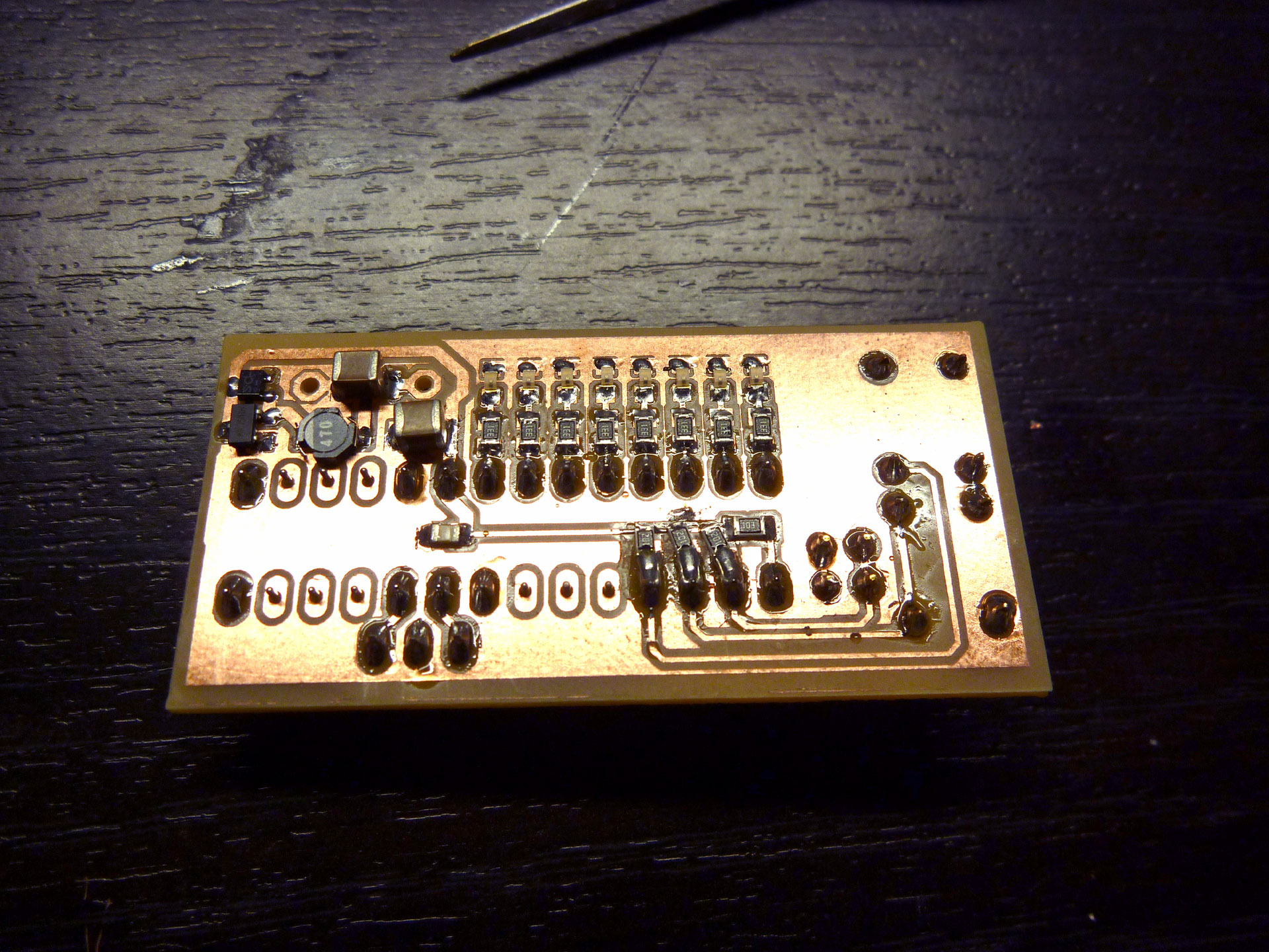 裏面。HT7750の昇圧回路と、LED8個が付いてます。