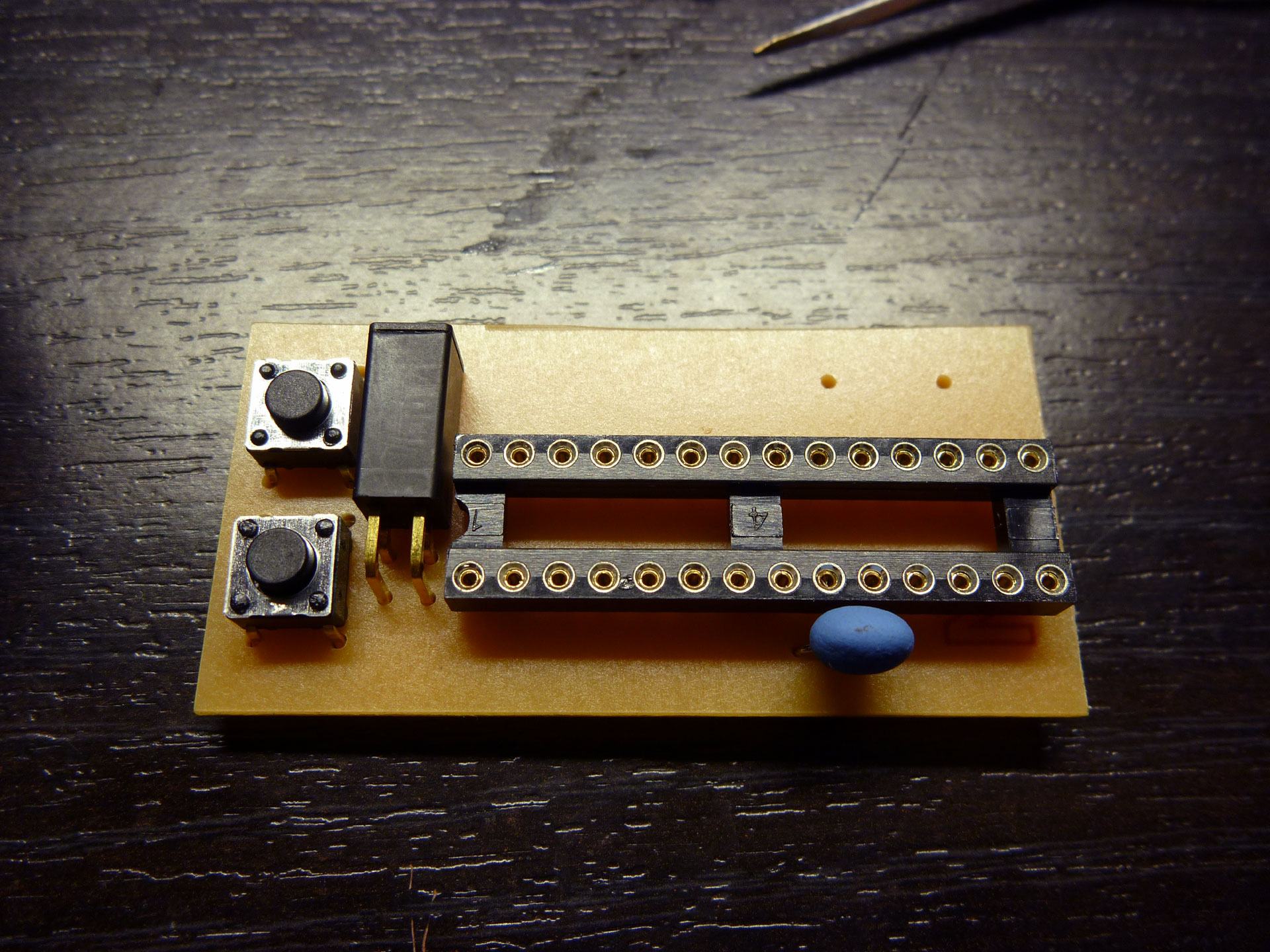 タクトスイッチ2個は、将来的に時刻の設定とかに使うという妄想で付けました。