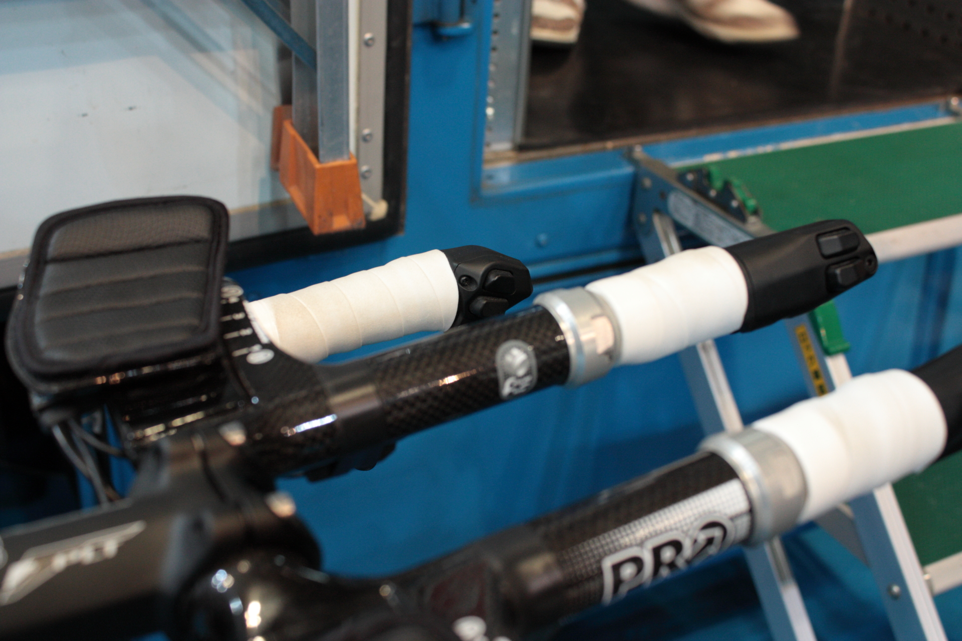 シフトボタンが電動ならでは。ブルホーンっぽい部分の先っぽと、DHバーの先っぽの両方に操作ボタンが付いています。電動だからこそ出来た事でしょうね。