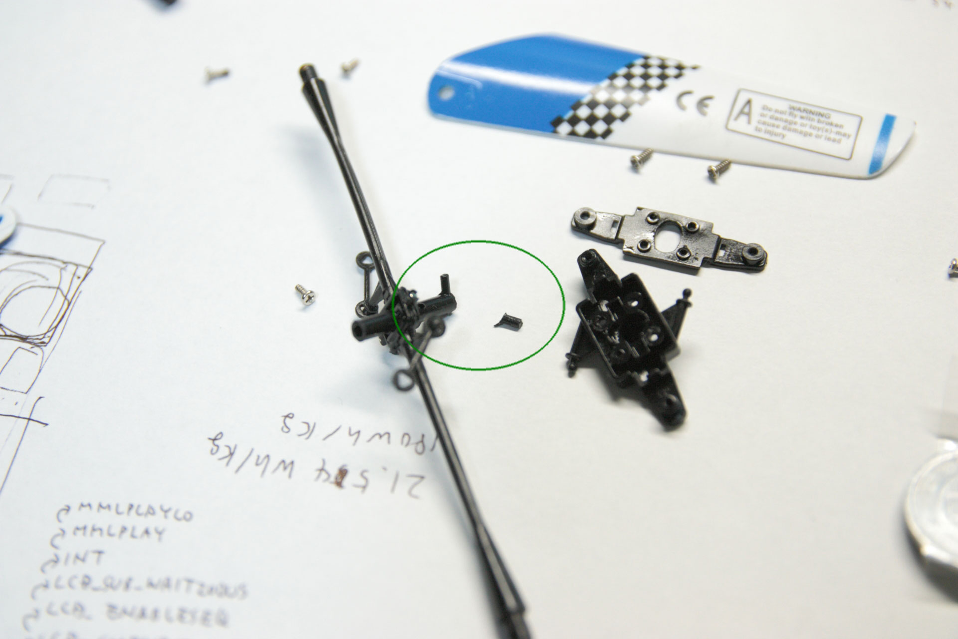 飛ばすのをやめてよーく見ると、なんか上側ローターがガッタガタになっております。