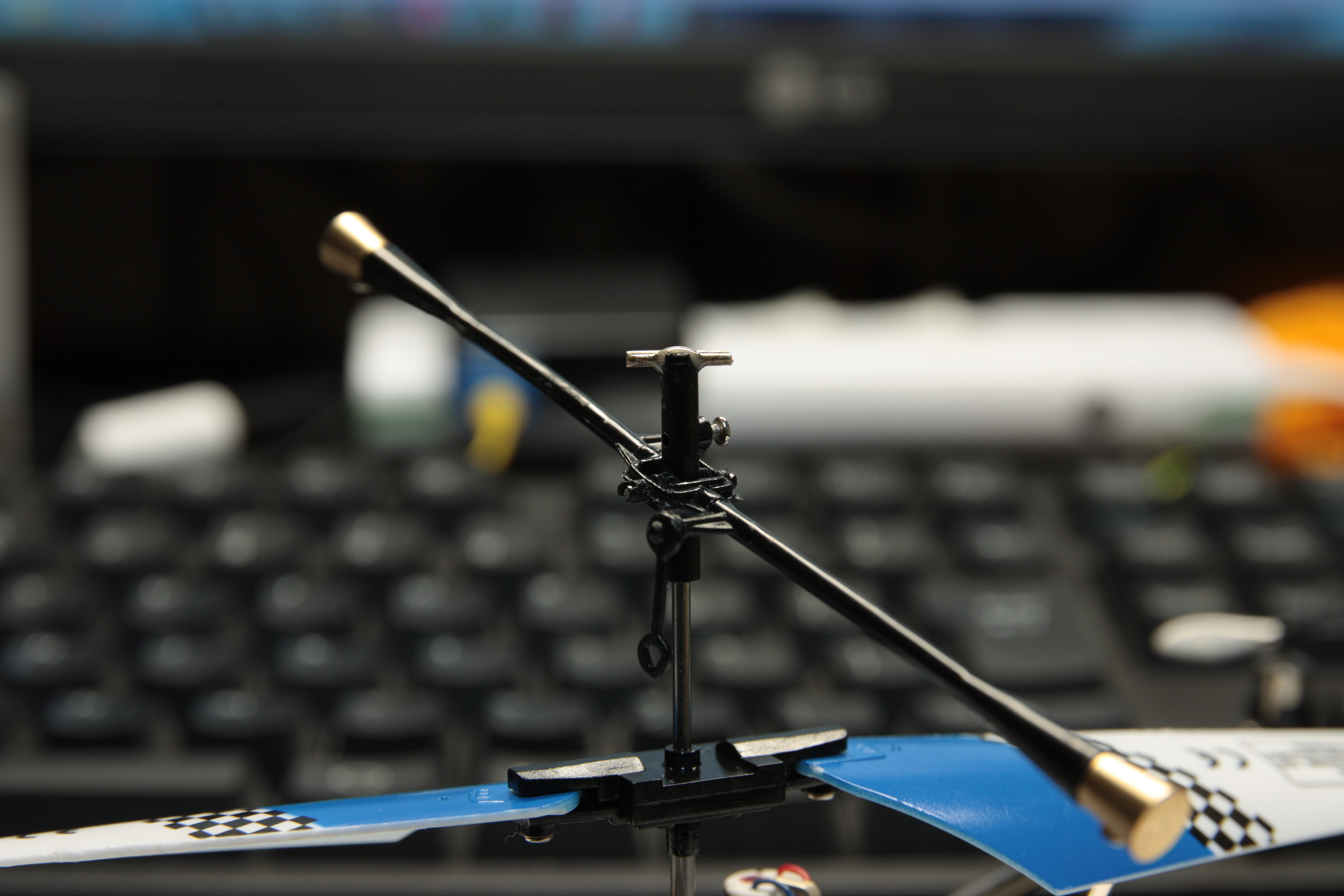 ローターとスタビライザーのリンケージが片方すっ飛んでどっか行きましたが、気合いで発見。これでまた修理できる。