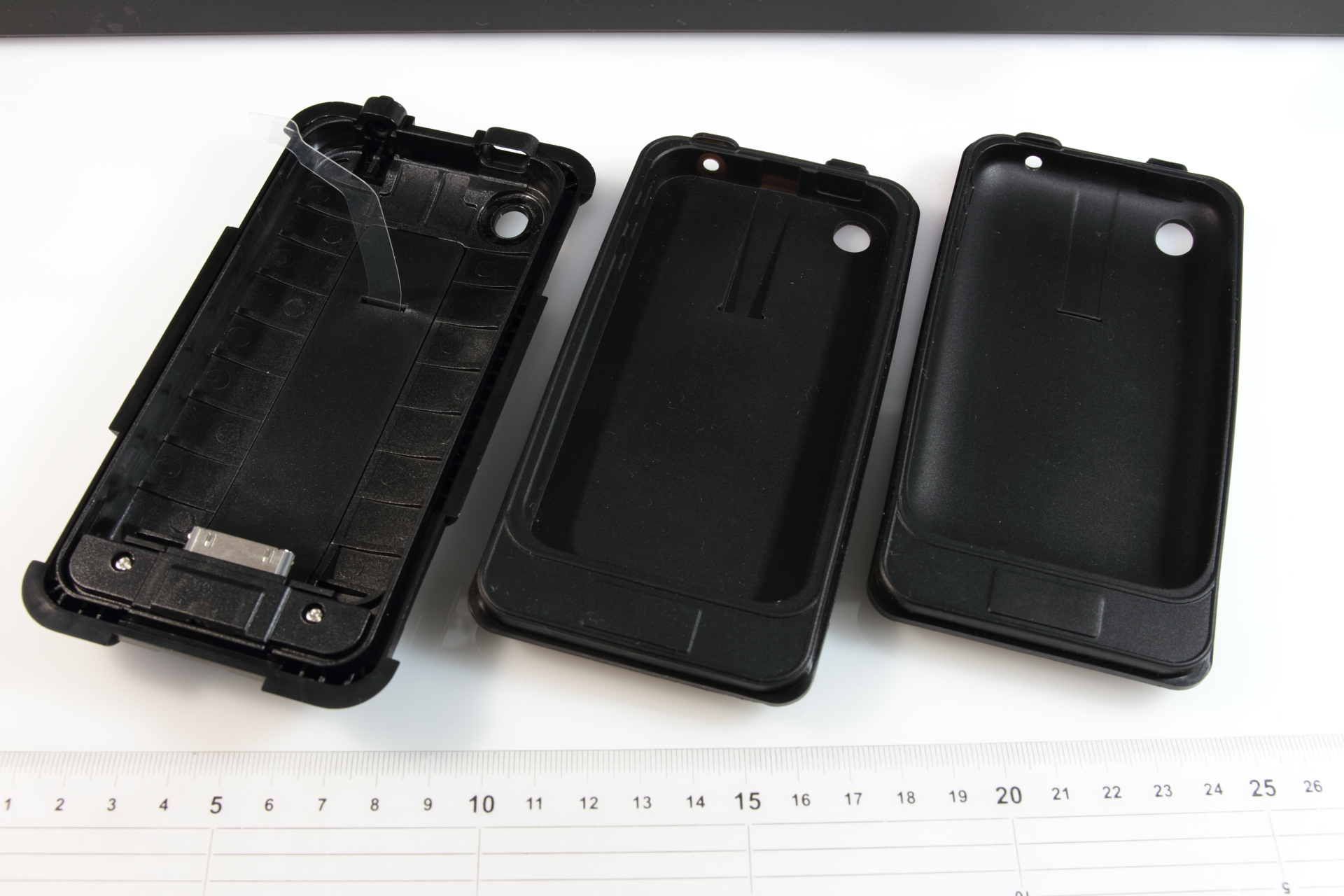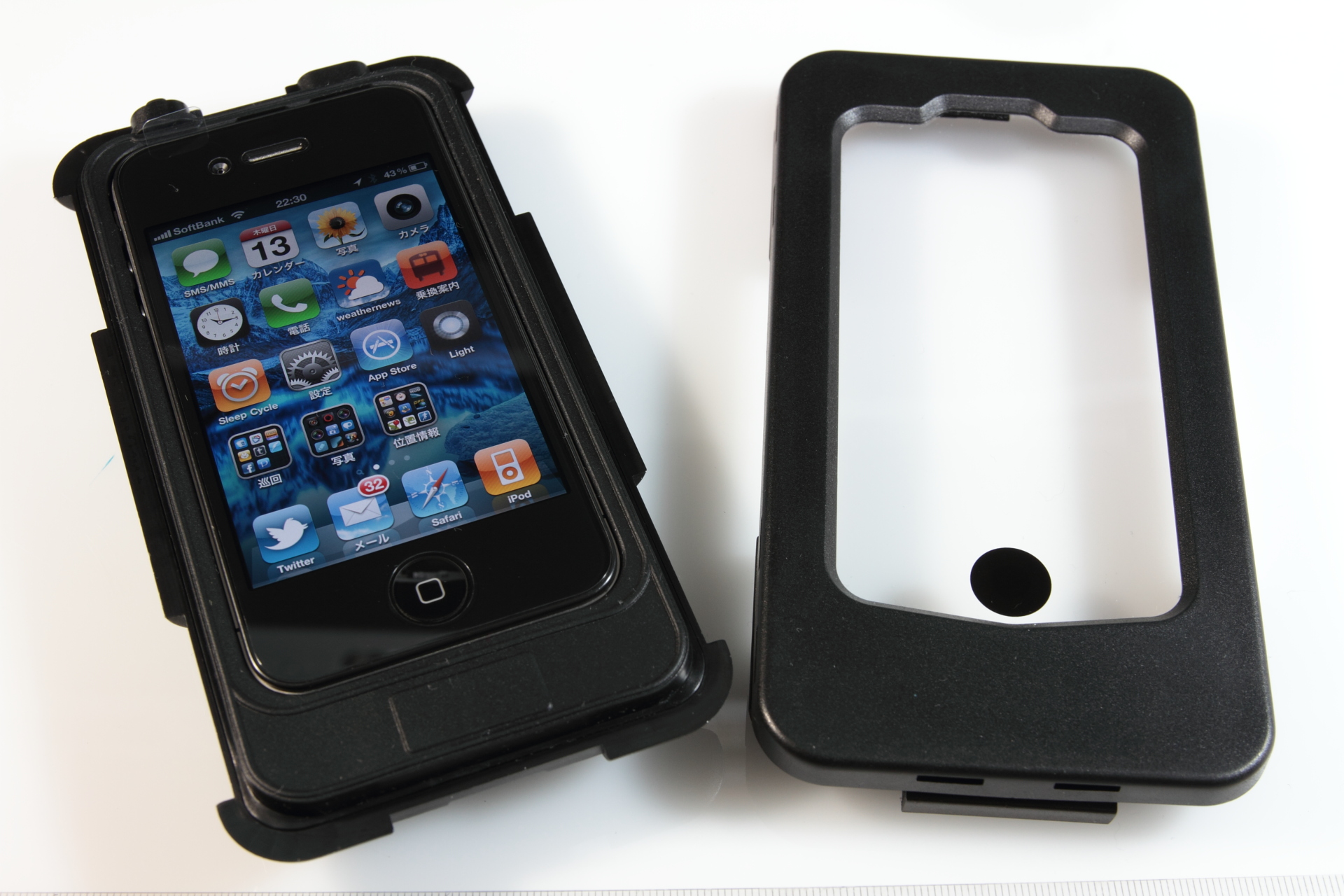 右の二つがゴムのスペーサ。これを交換することで、iPhone4/3GSどちらでも使えます。
