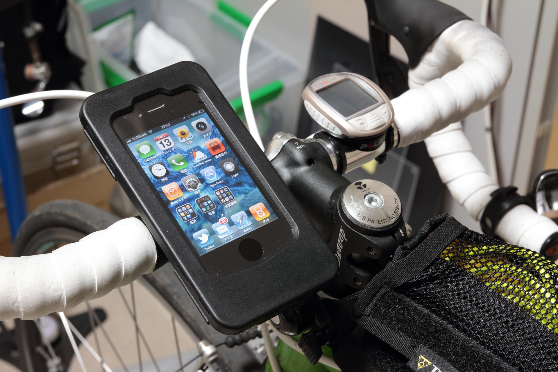 毎朝通勤時に、iPhoneのカバー外して、今回のこのケースに入れて、アプリ起動して、いってきまーすっていうのは正直ちょっとめんどくさいので今までのサイコンも付けておきます(えー