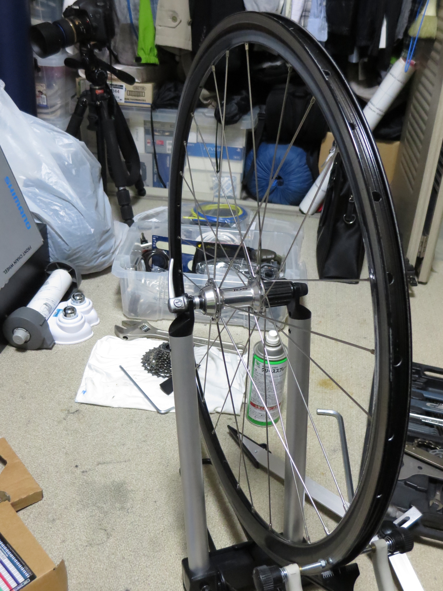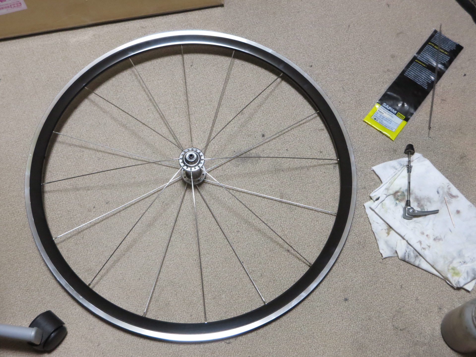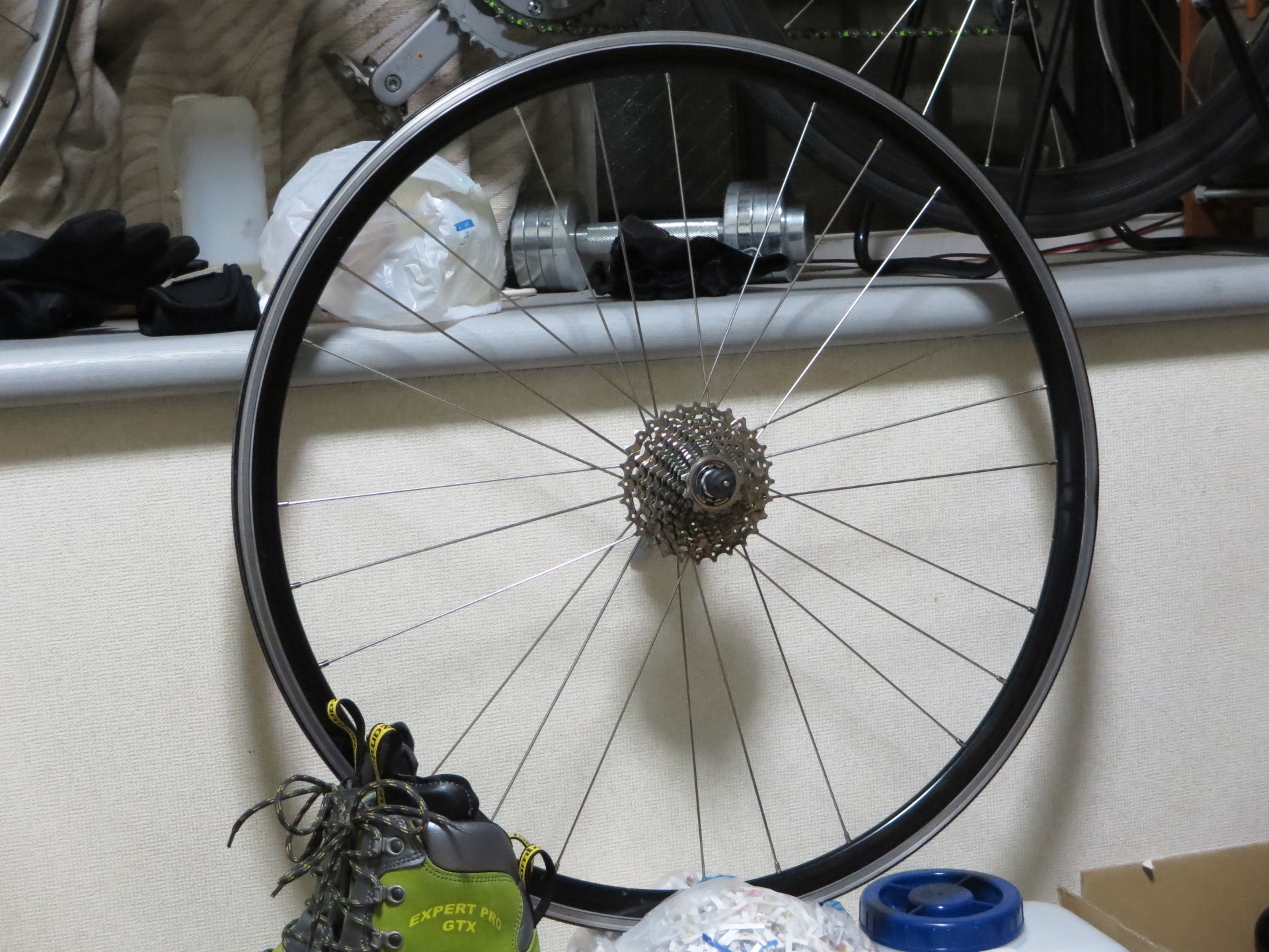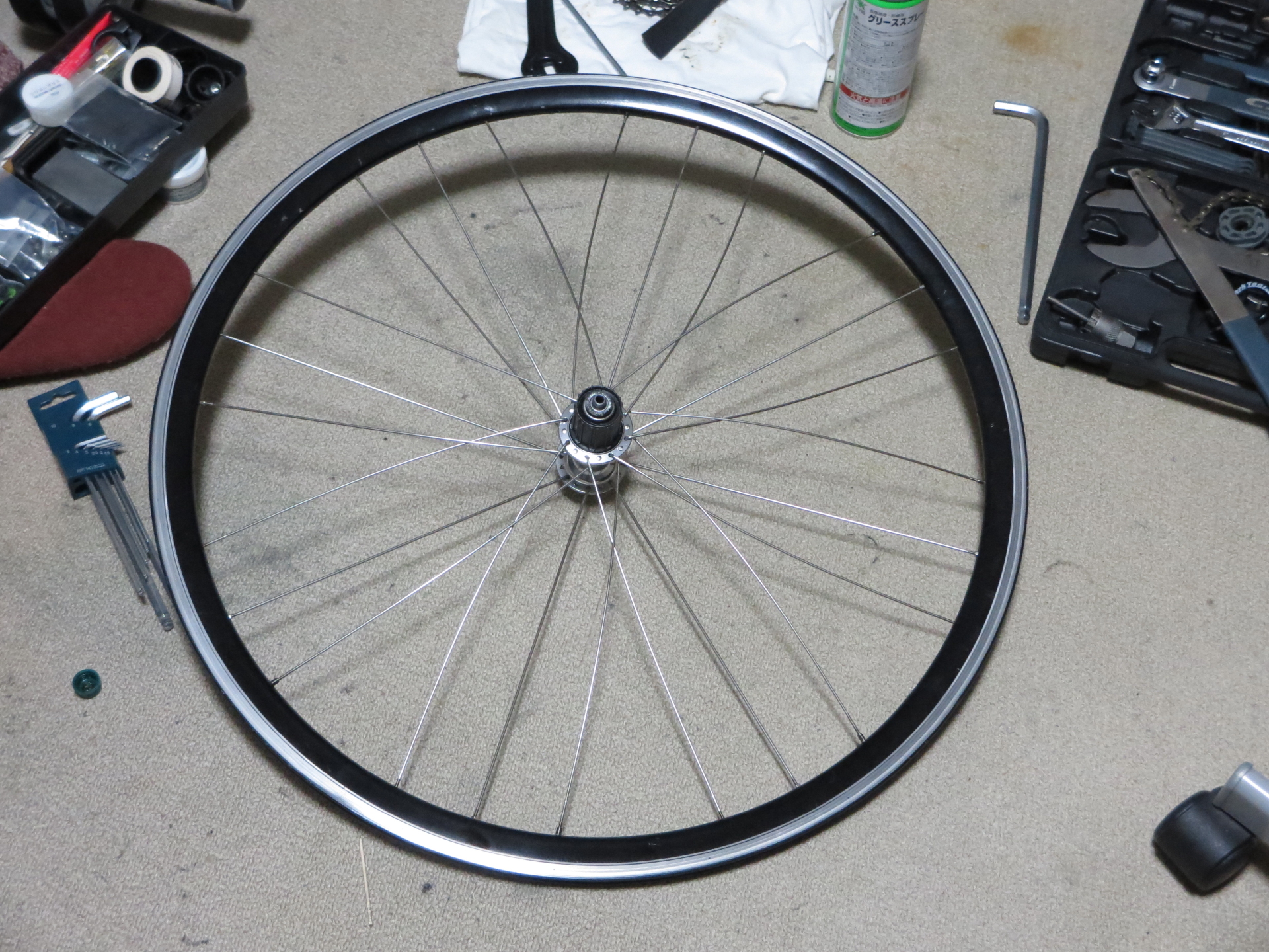 スポークが外側から出るように組んじゃったんだけど、当初の予定とは逆。まあ別に大差ないからいいか。