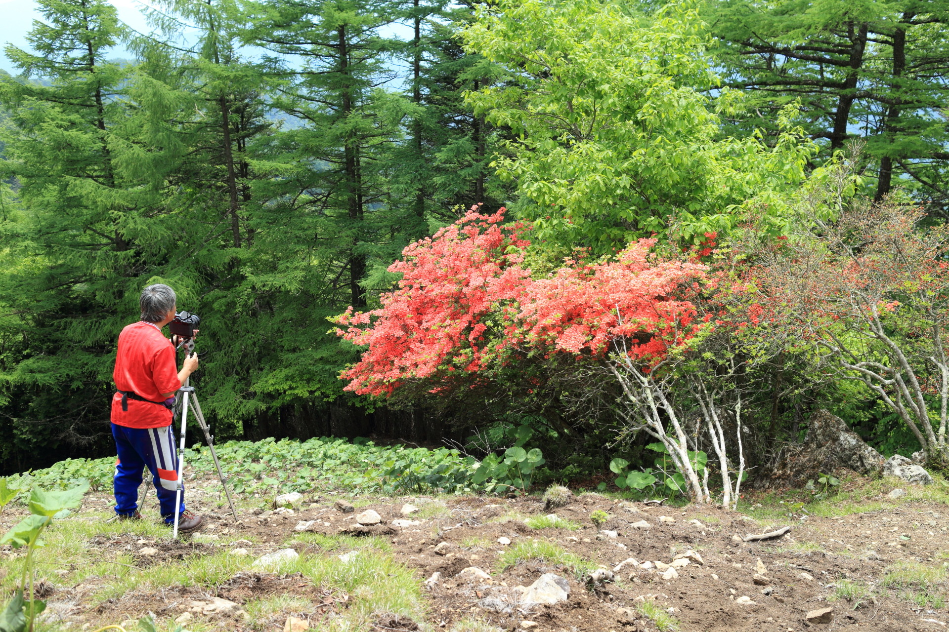 標高1800mで三脚にフィルム一眼のっけて写真撮ってる人が。