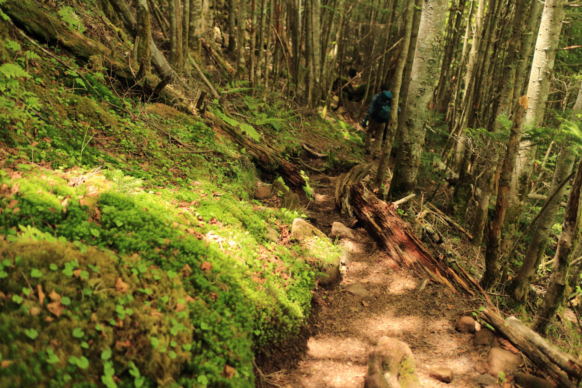 この辺まで降りてくると、またジメジメしたコケまみれの森に。