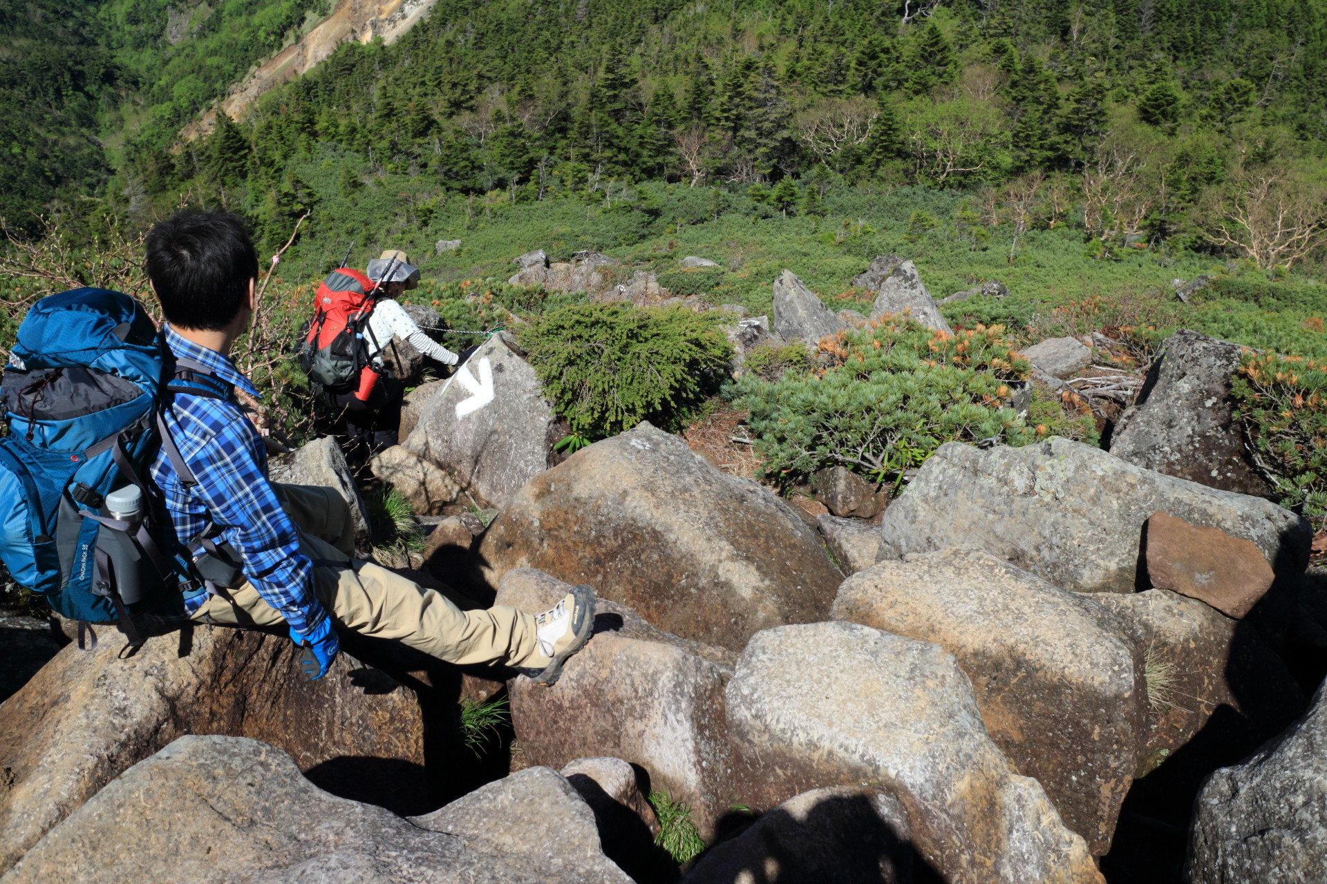 木がないので岩に○とか⇔とか×とか書いてあります。誰が書いたか知りませんがお疲れ様です…。