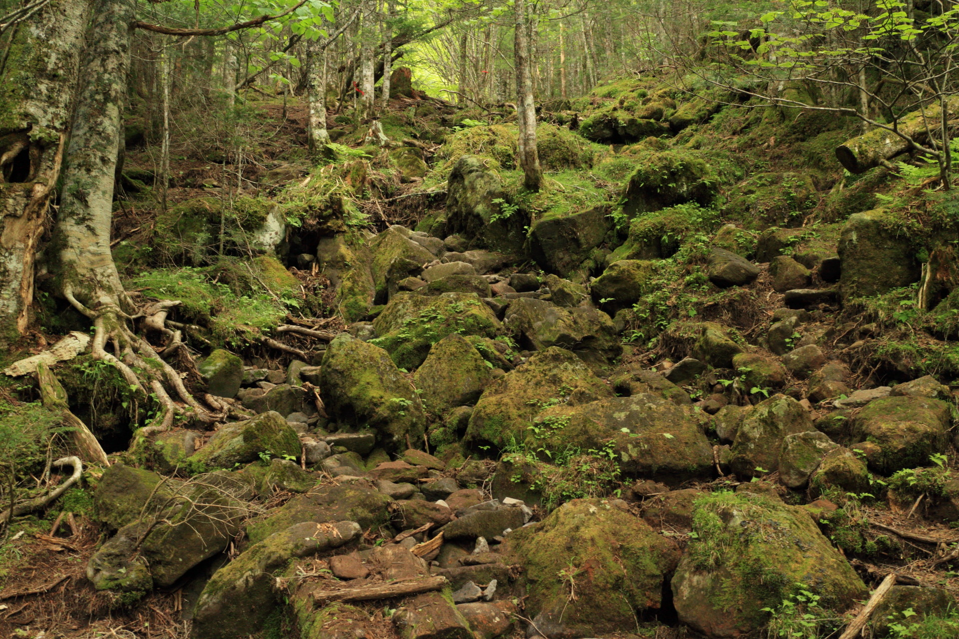 ちょっと歩いて森に入ったらいきなり苔地獄。