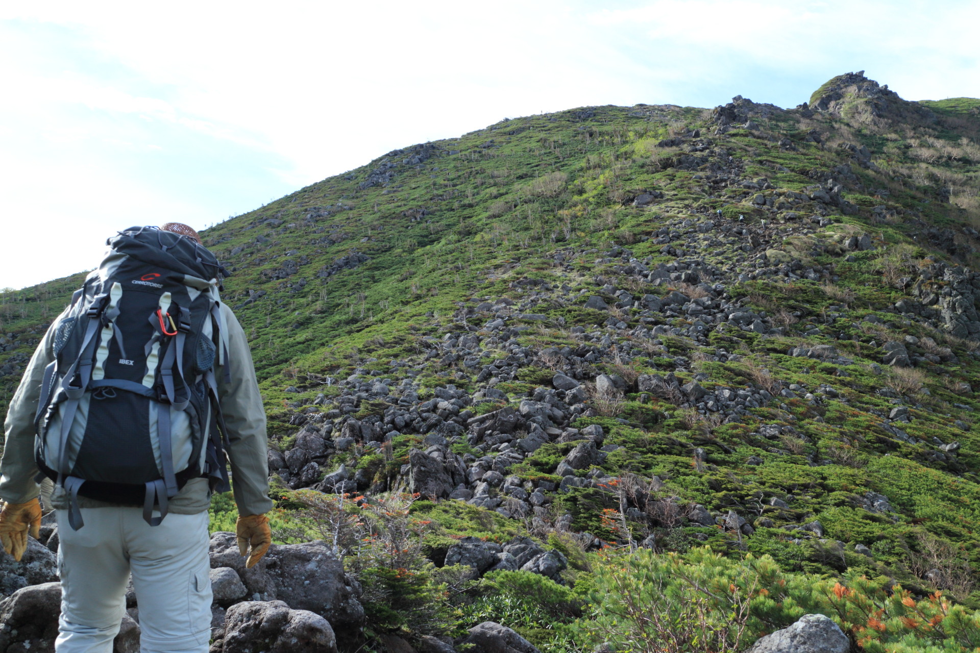 黒百合ヒュッテの時点で標高がすでに2,390mなのでちょっと登るともう木がないんですな。
