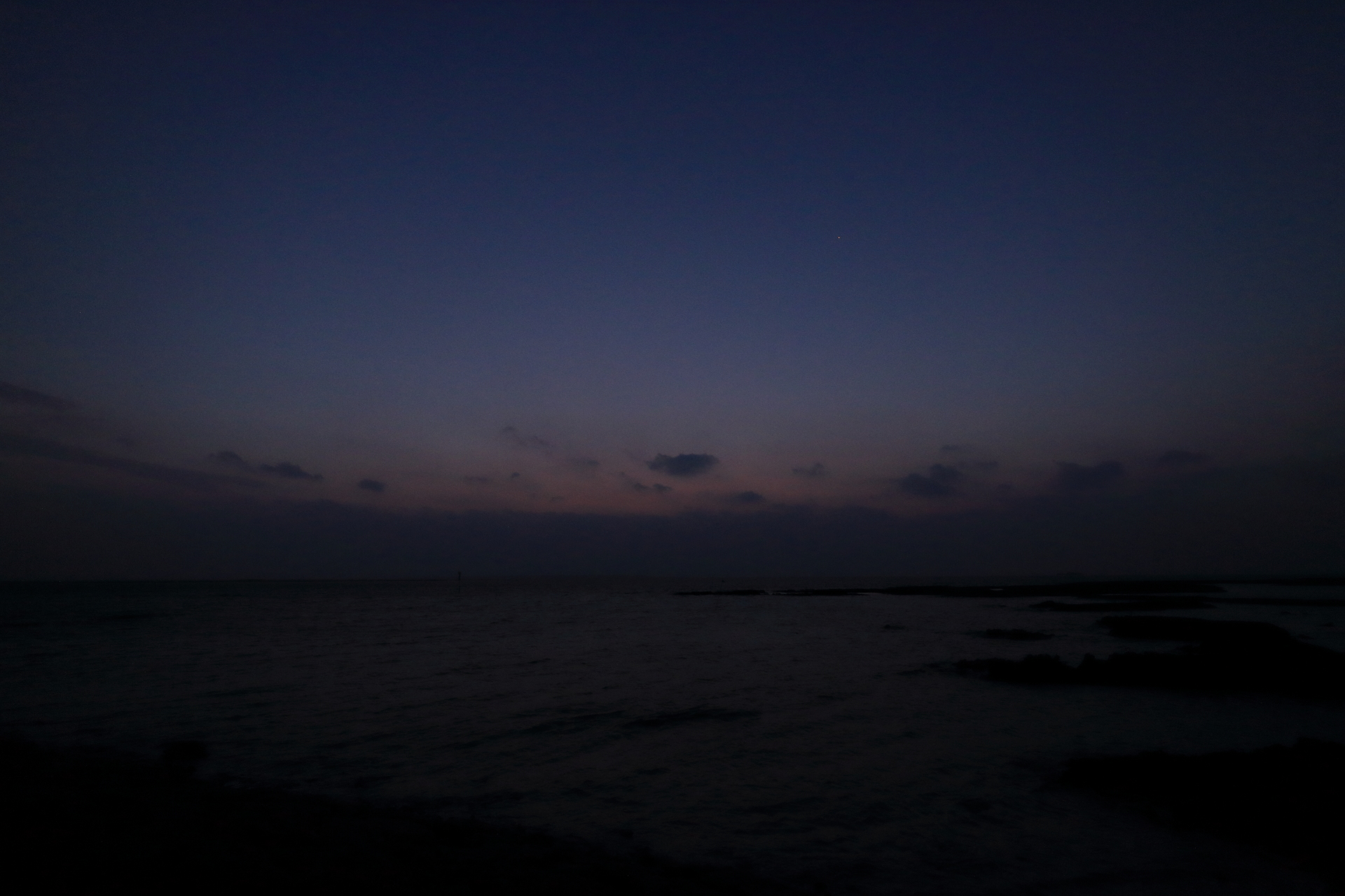 日の出の方角をiPhoneのコンパスで確認しましたが、完全に海の上だったので問題なし。