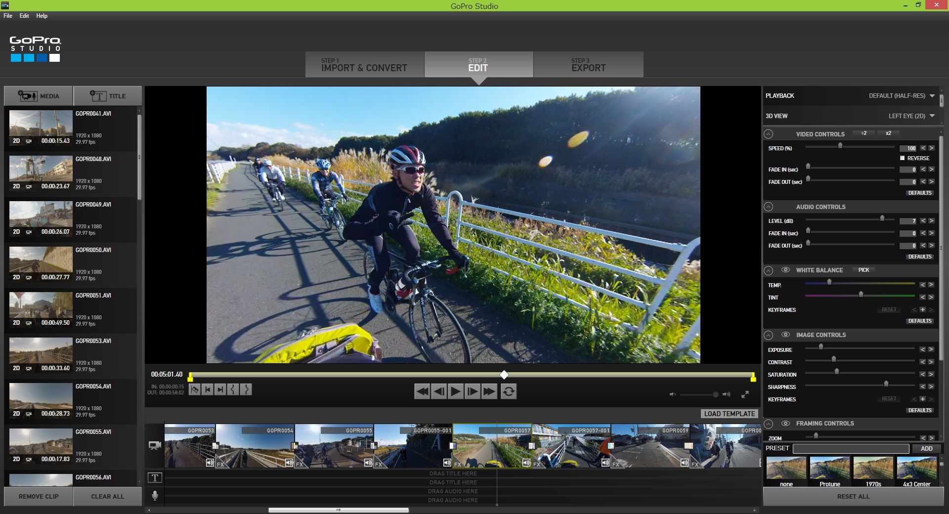 ・GoPro Studioで必要箇所の切り出し・画質調整