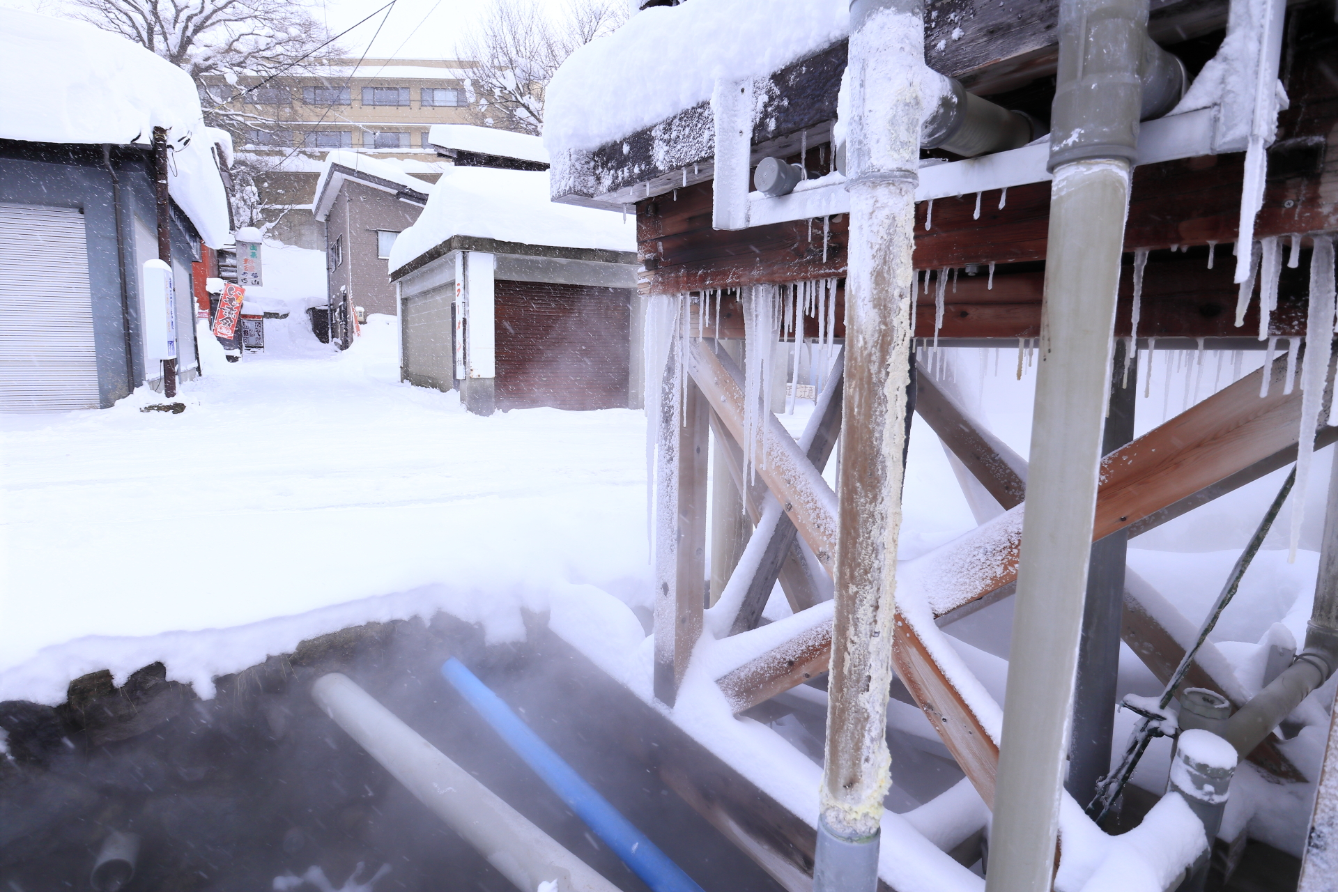 外湯はちゃんと温泉(たしかナトリウム泉)でめっちゃお湯が茶色くて効きそうです(何に?)